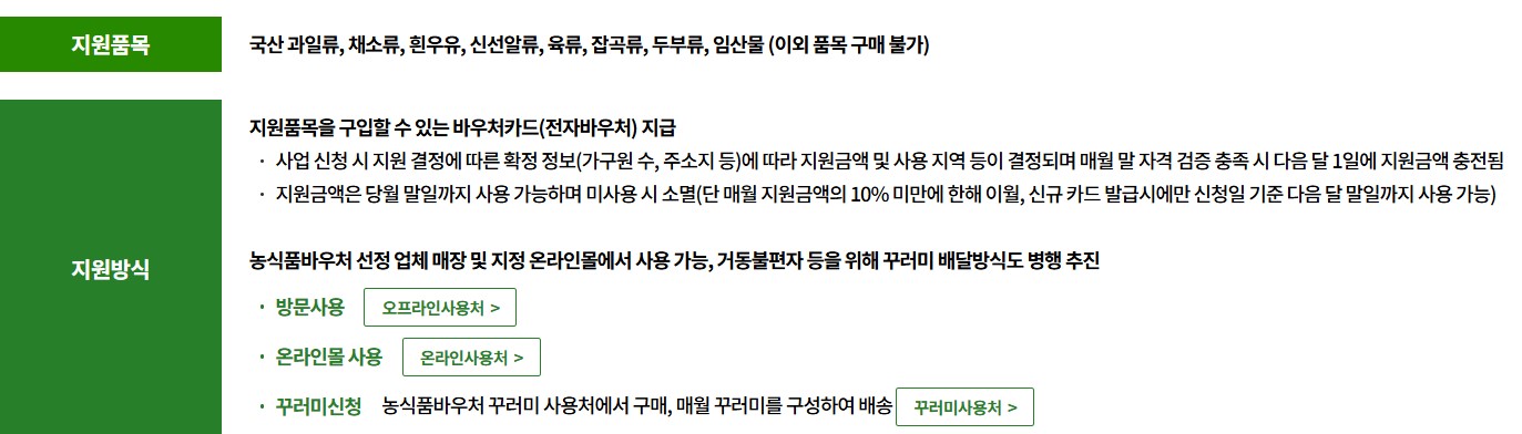 2024년부터 시행된 이 제도는 저소득층의 식생활 개선을 위해 매월 농식품 구매 바우처를 지급하는 사업입니다.