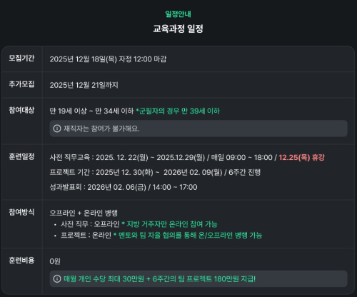 📌 일부 과정은 오프라인 병행됩니다. 지역·일정별 세부사항은 운영기관 공지 확인 필요합니다.
