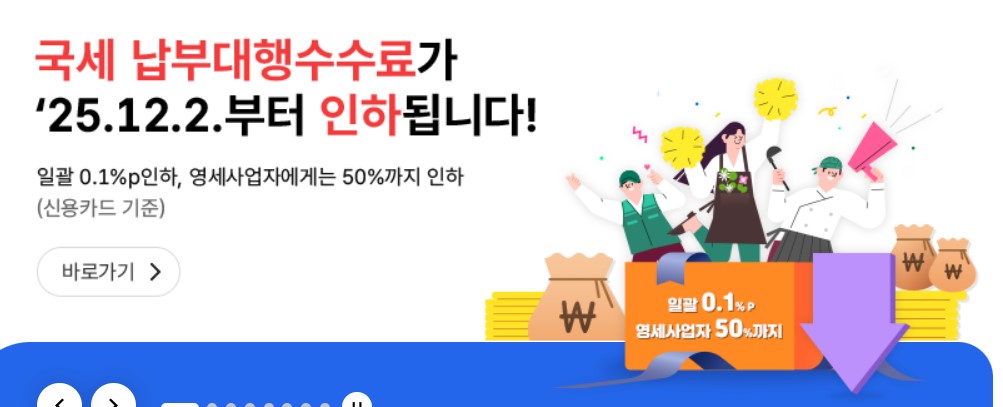 정부는 민생경제 회복과 영세사업자 지원을 위해, 2025년 12월 2일부터 국세 납부대행 카드 수수료를 인하합니다.
