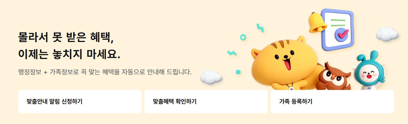 복지, 금융, 교육, 주거… 이제 필요한 도움을 놓치지 마세요.