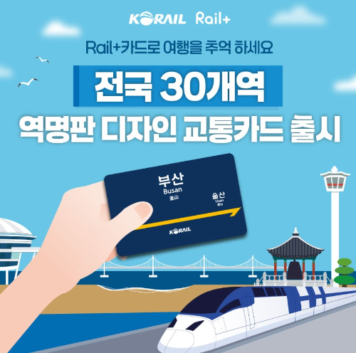 이번에 출시된 Rail+ 역명판 교통카드는 KTX, ITX, 일반열차 등에서 사용 가능한 충전식 교통카드로, 전국 주요 역사들의 실제 역명판 디자인이 적용된 것이 특징입니다.